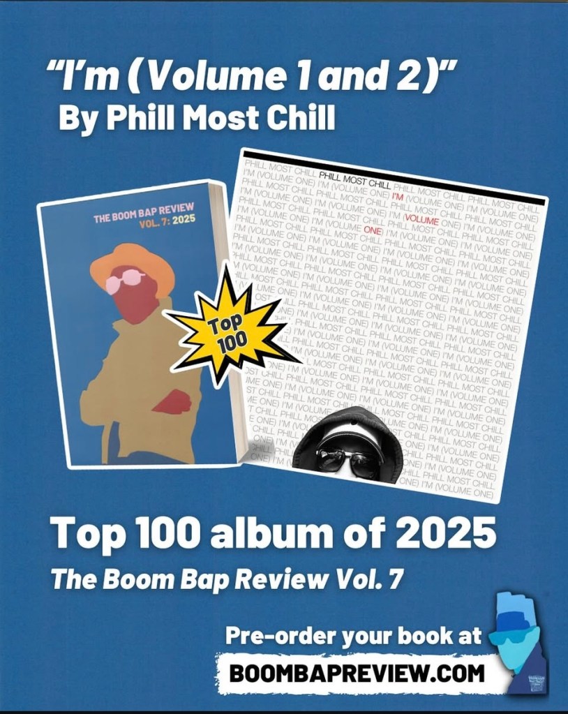 Phill Most Chill’s “I’m” Volumes 1 &2 produced by DJ MROK are included in the Top 100 albums of 2025 in Vol. 7 of The Boom Bap Review. Purchase Book.